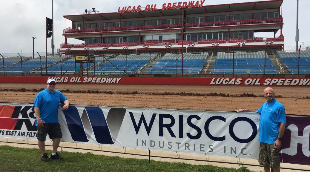 Wrisco is proud to wear the title as the Official Racing Aluminum Sponsor of the Lucas Oil Late Model Dirt Series. Pictured are Jim Neff and Russ Gray of Wrisco Chicago at the Lucas Oil Speedway in Wheatland, MO during the 25th Annual Lucas Oil Show-Me 100.